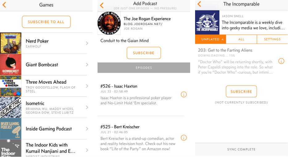 Минималист, энгийн хэрнээ тодорхой загварт дуртай хүмүүст тохиромжтой апп. Ихэнх подкаст аппууд сурталчилгааны талбай ихтэй, замбараагүй гэмээр олон өнгө будаг шавсан байдаг бол энэ апп нь цэгцтэй, бараг хэтэрхий энгийн гэмээр загвартай. Overcast-ийг нээж ормогц таны дагаж байгаа цувралын жагсаалт гарч ирнэ. Харин баруун дээд буланд нь байгаа нэмэх товчлууртай тэмдгийг дарж технологи, бизнес, урлаг гээд төрөл бүрийн цувралууд шинээр хайна. Ерөнхийдөө дизайны хувьд өөр илүү дутуу юм байхгүй. Загварын хувьд маш энгийн ч гэсэн ном уншиж байгаа хоолой нь жигд өнгөтэй, шинэ хуудас руу холбогдохгүйгээр дараагийн бүлэг рүү шилжих боломжтой гээд бусад аппуудад байдаггүй олон тохиргоотай. Гэхдээ харамсалтай нь энэ апп зөвхөн IOS системд зориулж бүтээгдсэн учраас Android үйлдлийн системтэй хэрэглэгчид ашиглах боломжгүй.