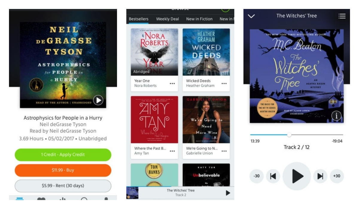 Аудио номын аппууд дундаа хамгийн сайн танигдсан, олон төрлийн tools буюу хэрэгслүүдтэй Audible-ийг мэдэхгүй хүн ховор байх. Сонсох хурдаа өөрөө тохируулж болдог, сонсож байсан газраа тэмдэглээд орхидог гээд апп бүрт байдаг энгийн хэрнээ чухал үйлдлүүдтэйгээс гадна 150,000 гаруй номын сан бүрдүүлсэн, Kindle аккоунттайгаа холбож болдгоороо давуу талтай. Уг апп-ийг татсанаар та Kindle-дээ авсан цахим ном дээрээ бага хэмжээний төлбөр нэмээд аудиогоор нь сонсох боломжтой болно гэсэн үг юм.